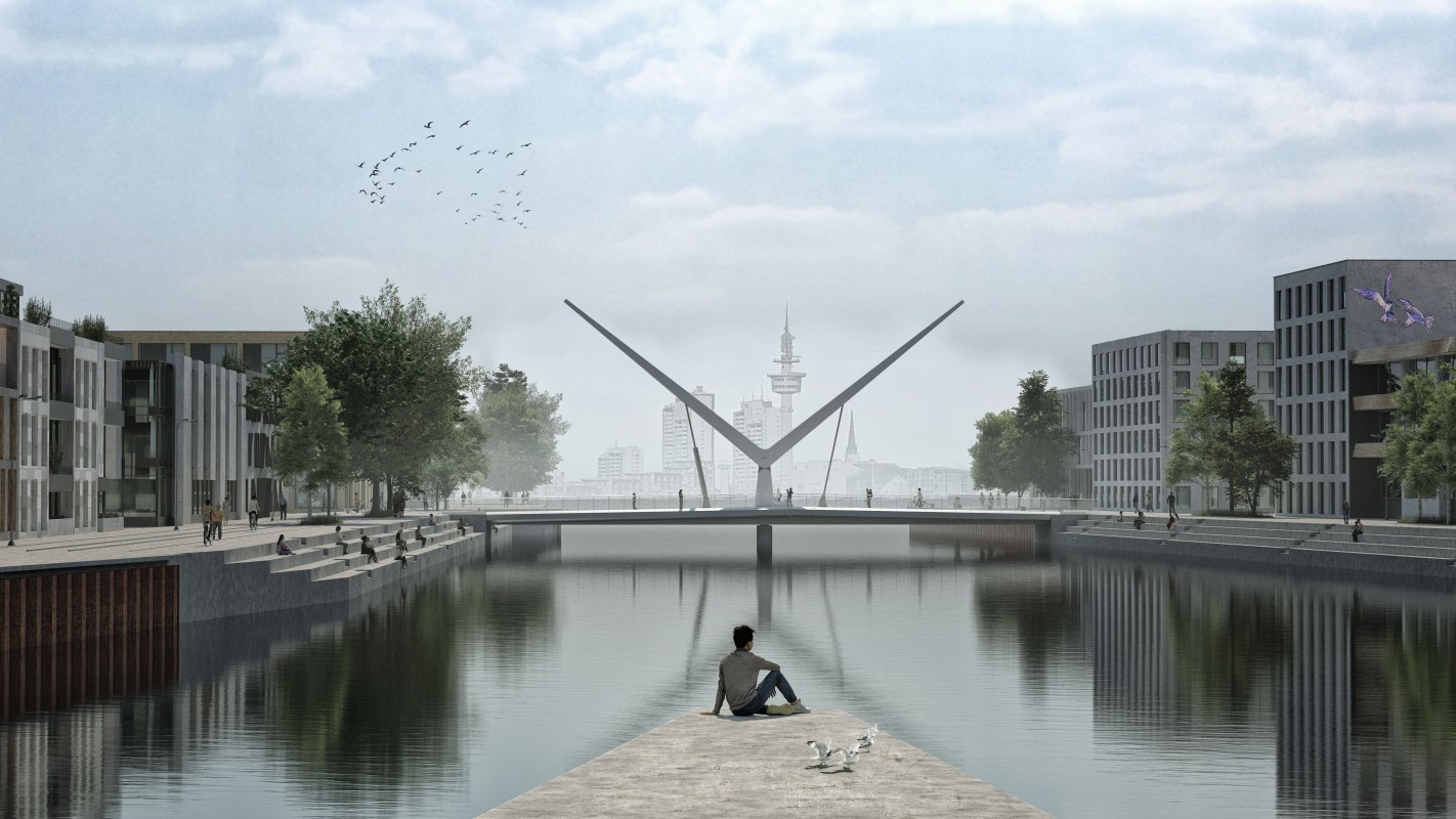 Die Fuß- und Radwegbrücke soll als bewegliche Brücke auch dem Busverkehr dienen und das Werftquartier mit dem Stadtteil Geestemünde und dem Hauptbahnhof verbinden.